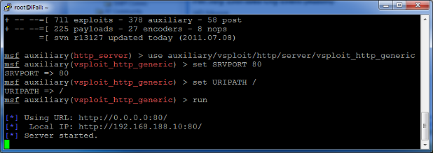 To try out the new vSploit modules, start up the vSploit Generic HTTP Server.