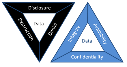 A few years ago while I was working at Defense Cybercrime Center (DC3), one of my colleagues Terrence Lillard talked about the DDD triad in regards to what attackers want to do to organization's assets. I haven't heard anyone outside of him using that term, but I think it's worth sharing. I participated in an awesome mini-conference event last week with the Metasploit Developement team and this came up during my talk on Risk Management. When I asked the audience of seasoned security practicioners what was the opposite of the CIA triad, and few elements of the DDD triad where volunteered, but as a complete picture it was something new to them.