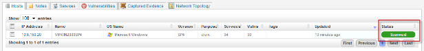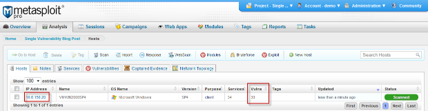 - In the Analysis tab, click on Hosts. Then, click on the host that has the vulnerability you want to exploit.