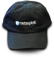 - 6-panel baseball hat with embroidered Metasploit logo on the front