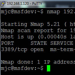mjc@msfdev:~$ nmap 192.168.1.0/24 -p 3389