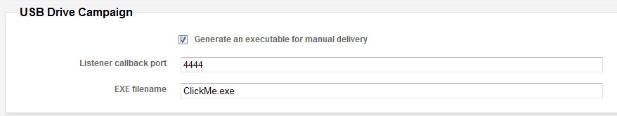 The little executable we'll be using is usually used for USB campaigns, which involve dropping USB keys in your target's parking lot and bathroom to see if anyone will plug the USB thumb drive into their machine and double-click the executable. While it was built for a different purpose, it will work just fine to test the inbound connection to Metasploit.