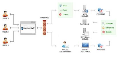 Metasploit Pro is accessed through a web interface that is available not only on the local host but also across the network (personal firewall rules permitting). As a result, multiple people can log into the interface at the same time, work on the same project, share sessions, credentials, evidence, and reporting.