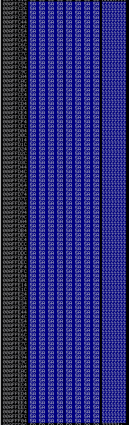 Figure 13: Confirmed stack including the RETN address overwrite by a unique string.
