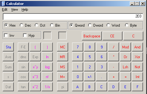 Now convert the 2E0 value to a decimal.