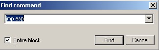 Figure 24. Search for the jmp esp command.