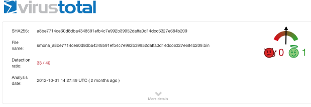When an executable payload is generated in Metasploit as part of an exploit, or generated through something like MSFVenom, a set of default templates are used. Most of the AV vendors have added static signatures for these default templates. These signatures don't even look for a payload; they just look for the executable template. Look what happens when we upload one of these empty templates to VirusTotal: