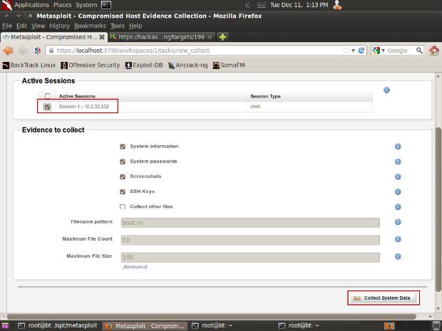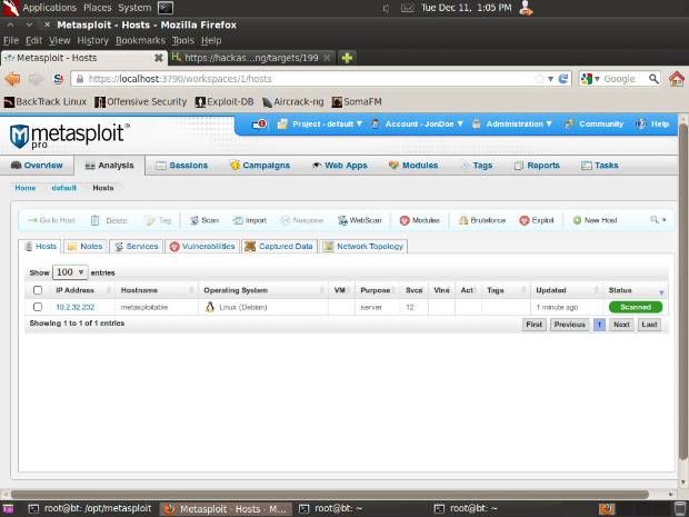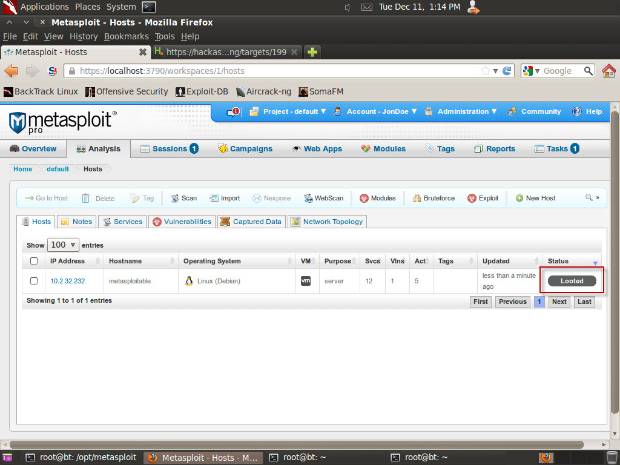 - Metasploit Pro will now collect passwords, screenshots, and other evidence from the machine. Going back to the Hosts screen in the Analysis menu, you'll see that the machine is marked as looted:
