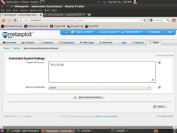 No matter whether you're taking your first steps with Metasploit or if you're already a pro, you need to practice, practice, practice your skillz. Setting up a penetration testing lab can be time-consuming and expensive (unless you have the hardware already), so I was very excited to learn about a new, free service called Hack A Server, which offers vulnerable machines for you to pwn in the cloud. The service only required that I download and launch a VPN configuration to connect to the vulnerable machines. Since I already had my Metasploit instance set up on BackTrack, it only took minutes to get started. Once you're up and running, you can choose from a large number of vulnerable machines, including Metasploitable.