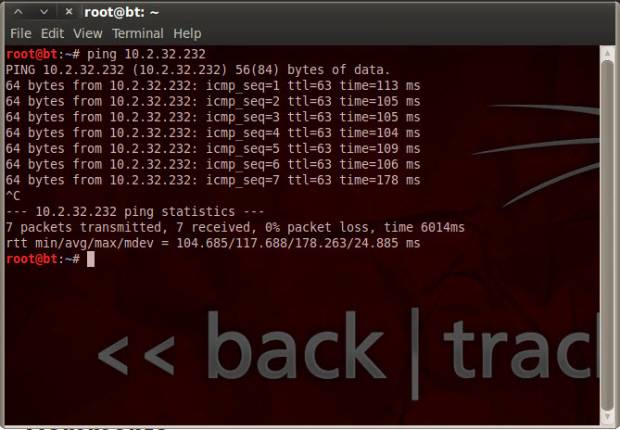 This proves that you have a network connection to the Metasploitable machine. Congratulations!