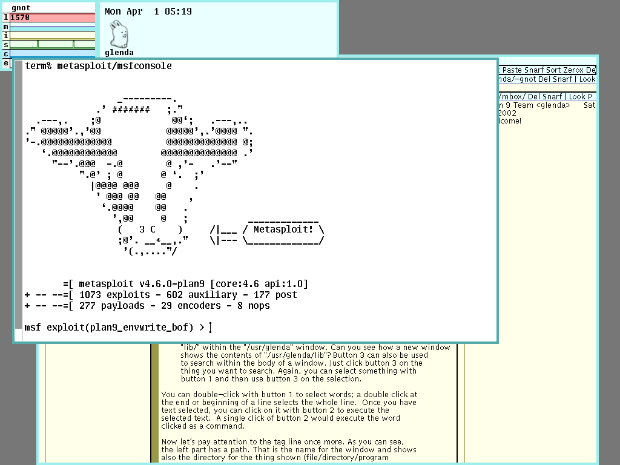 Today, we are delighted to announce the next phase of Metaploit's expanded support for more diverse host operating systems. On the heels of our integration work with Kali Linux, we've been heads-down on putting the finishing touches on our support for the future of Unix, Plan 9 from Bell Labs.