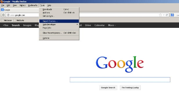 Next we will close the Metasploit Browser all together and then open a new browser and go to the Tools menu and select the Import Cookies option (which shows up after installing the Cookie Importer Add-on). Then select the modified cookies.txt file and import the cookies.