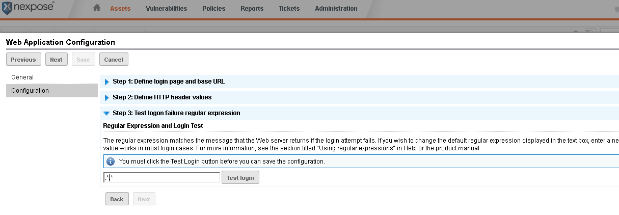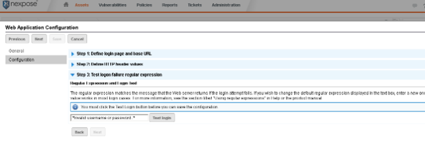 Once everything has been entered into Nexpose correctly, we will get the following when we click the ‘Test login' button.
