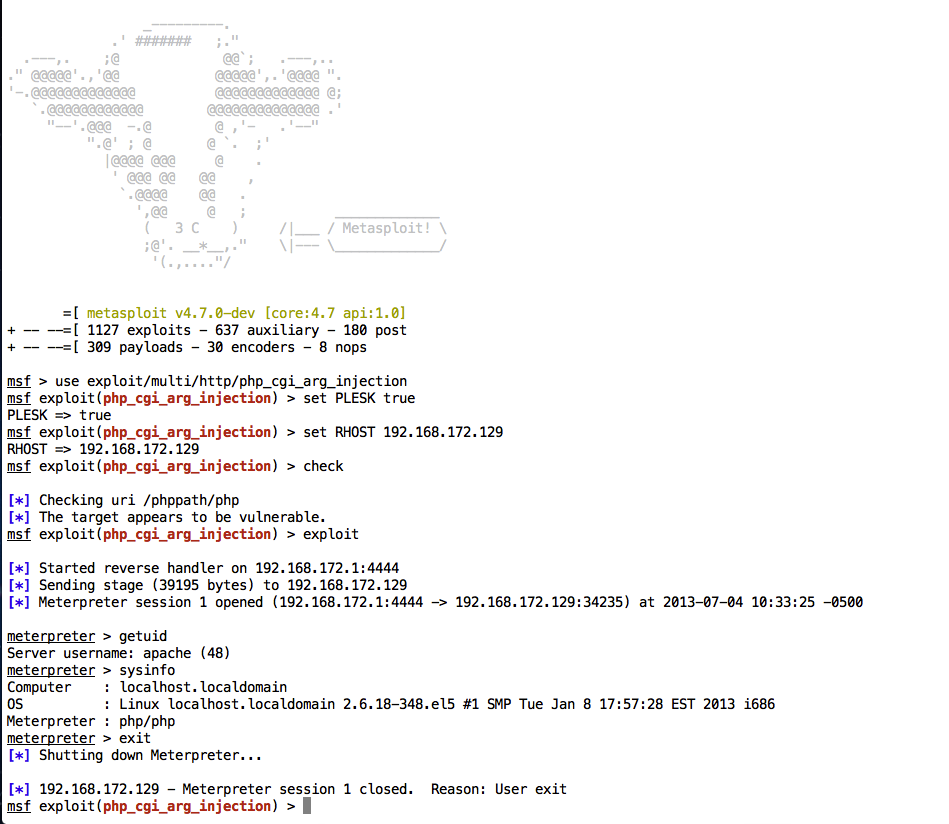 msf > use exploit/multi/http/php_cgi_arg_injection
