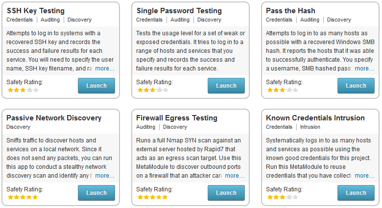 MetaModules automate common yet complicated security tests that provide under-resourced security departments a more efficient way to get the job done. The current release includes six MetaModules for security controls testing and penetration testing, which supply common functionality such as validating which outbound firewall ports are open, testing for default credentials or stealthily discovering hosts on the network.
