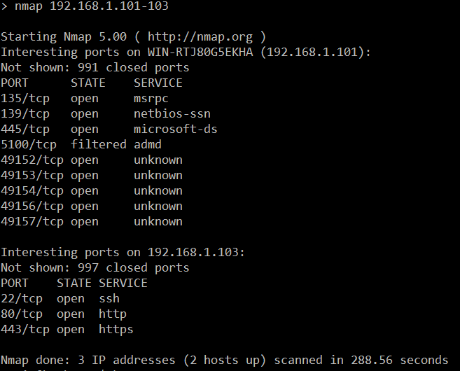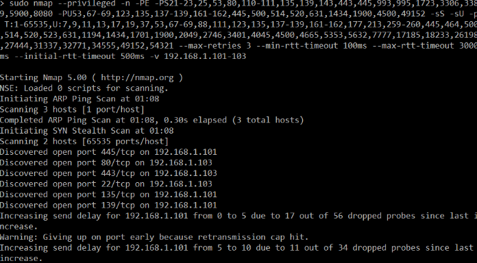 First perform a plain Nmap scan to see if the hosts come back alive at all. If they do you will probably see output similar to the image below. If the hosts do not come back as alive, ensure that your network allows traffic between Nexpose and the scan targets. This may include making configuration changes to a firewall or other network device.