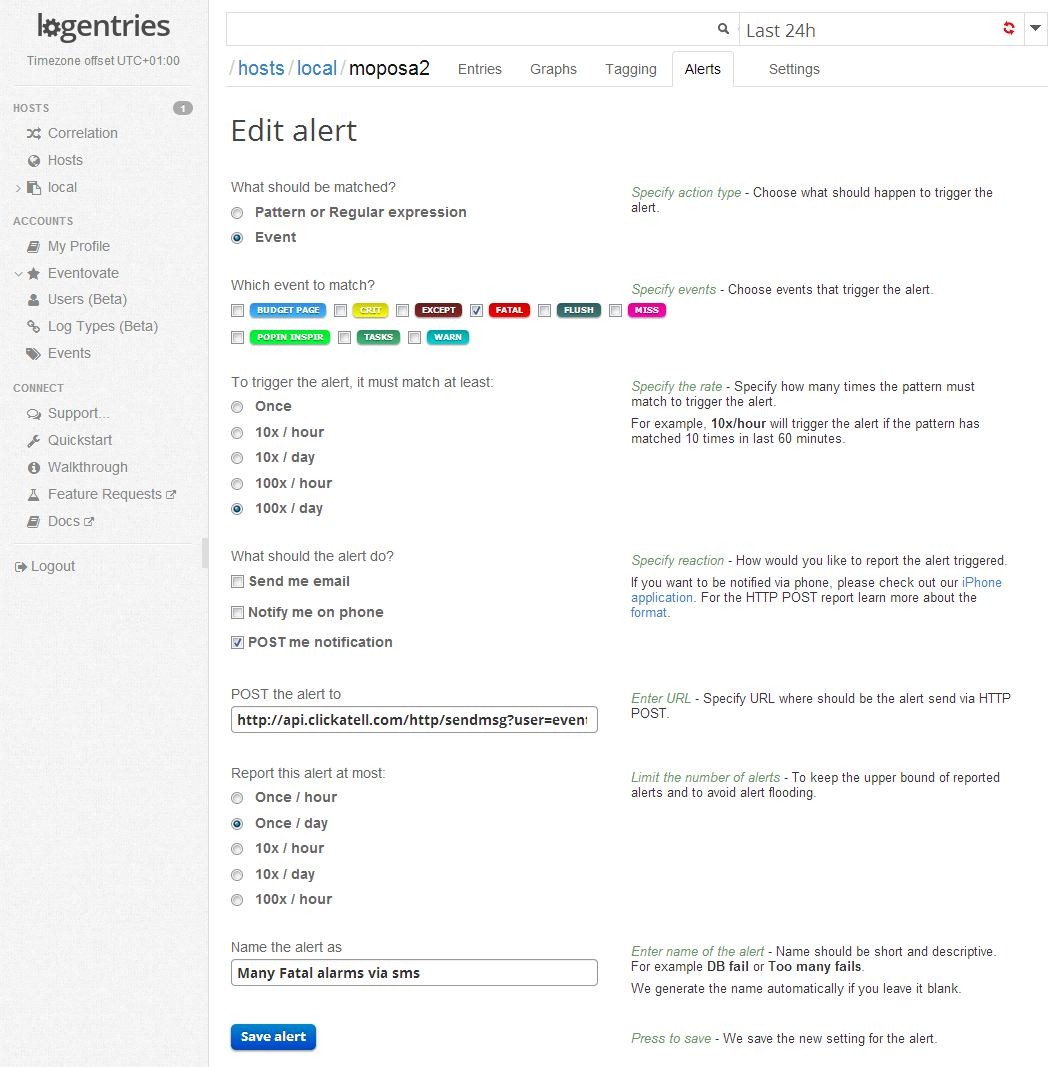 This is a guest blog post by Jason Ruane, the technical director at Moposa, a place for brides and grooms to plan and manage their wedding. In this post Jason, describes how he used Logentries webhook alerts and Clickatell to receive Logentries alerts via SMS. Jason and his team are long time users of logentries, analyzing all their logs from multiple servers in one centralized, cloud location.