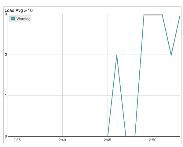 Then create a graph to visualize where load avg spikes above 10.0 over time: