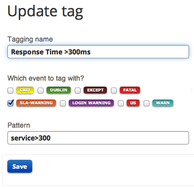 To do so you can create a tag in the same way as above. For example, the tag created below identifies any app request from my Heroku app that took longer than 300ms.