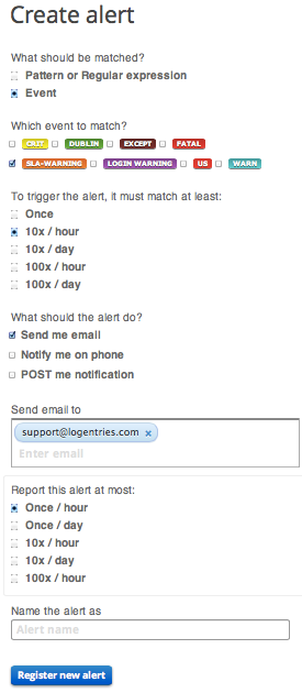 While a load average of 1.0 might be fine for your app a load average of 10.0, for example, might spell trouble for system performance and, if prolonged, may lead to degraded response times. Logentries’ field level extraction allows you to easily tag and track spikes in your performance metrics. Using field level extraction you can work with field values when searching, using tags or setting alerts. For example tracking when load average spikes to 10 or over can be achieved with the following search query.