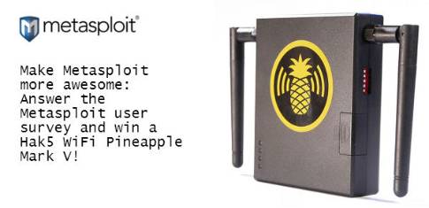 What's best: You can even win one of 3 WiFi Pineapple Mark V if you help with the Metasploit user survey. To qualify, you just need to be a Metasploit user (either open source or commercial editions is fine).