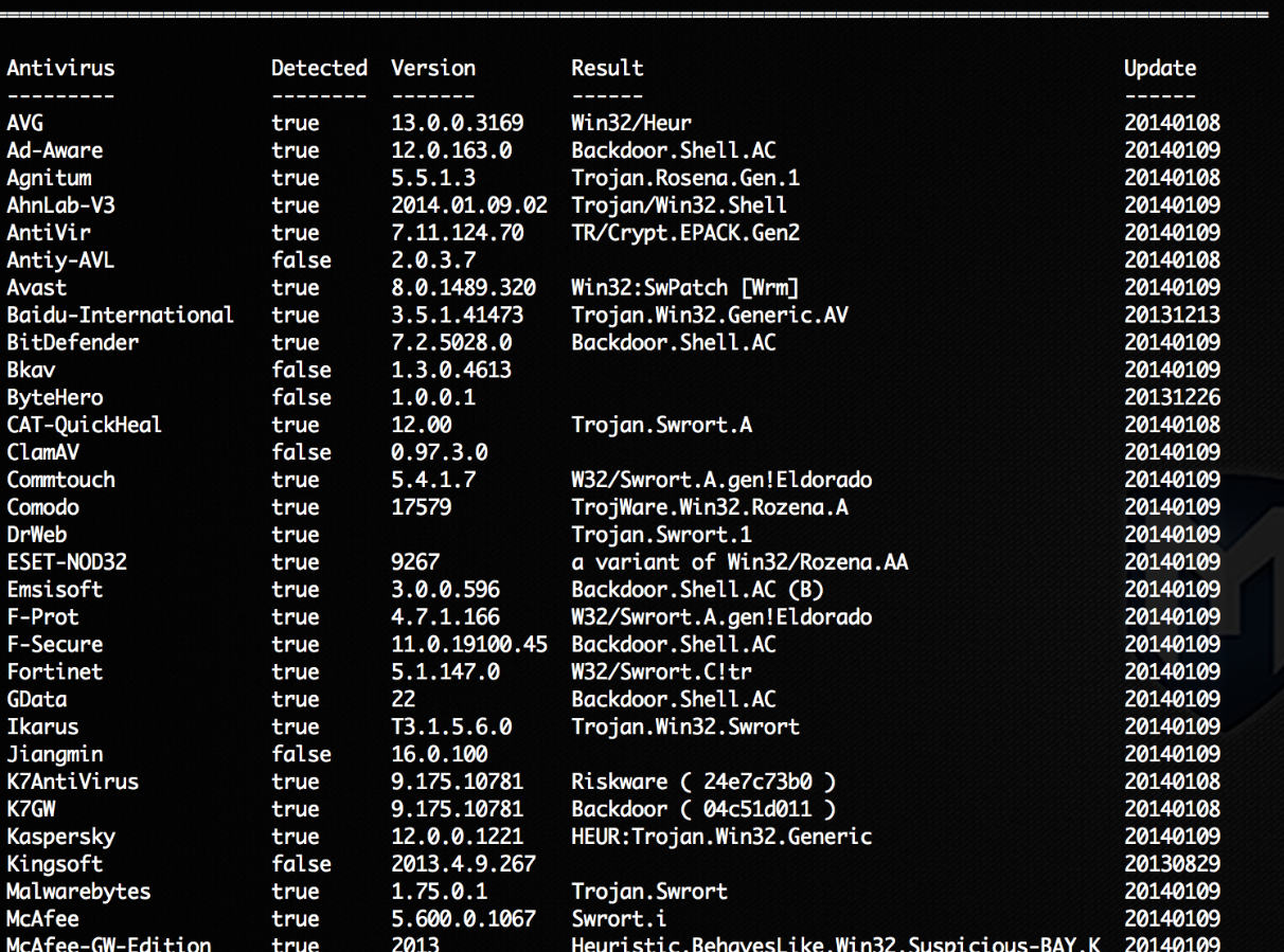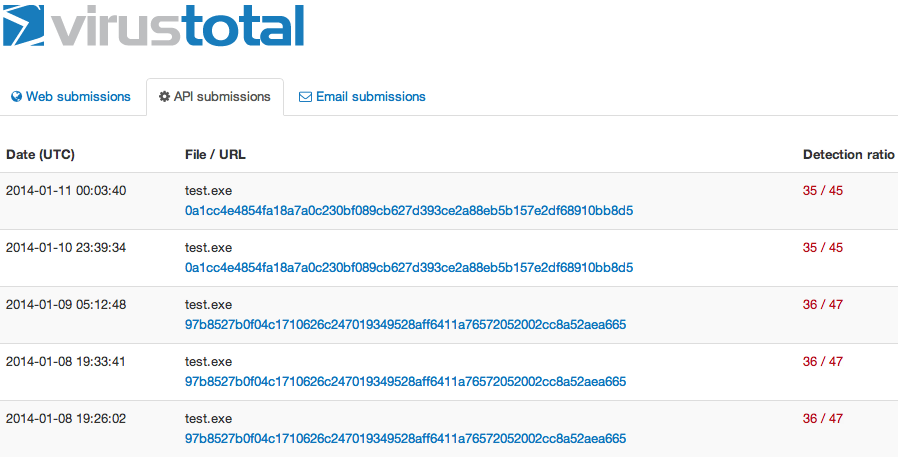 VirusTotal is a free online service that allows you to analyze files or URLs in order to identify malware detectable by antivirus engines, and is one of the most popular ones in the community, so we decided to get a piece of that action. As offensive tool developers, we often find ourselves testing the capabilities of different AV products. There are usually two ways to achieve this, of course. You either spend some money and build your own lab, or you spend nothing and just use VirusTotal's API and submit your malware to analyze. Obviously there are plenty of reasons why VirusTotal is useful, but I'll let you explore your own creativity :-) The main purpose of the blog is to explain what we've done to assist your need of automatic malware analysis, and how to use it.