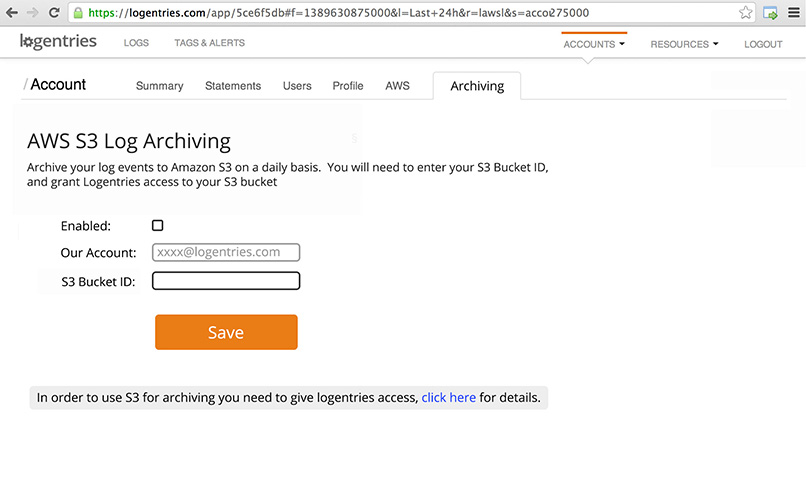 - Give your Logentries account write access to your S3 bucket.