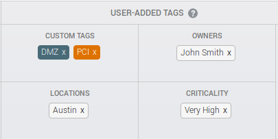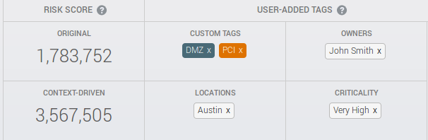 Using the sample screenshot above, as a Nexpose user, I can easily gain context into a specific asset. I know that this asset falls under PCI Compliance, lives in the DMZ somewhere, and this asset is really really critical to my business. In addition, the asset is owned by "John Smith" and is located somewhere in Austin. This allows you to gain real insight into how you may want to tackle risks that are found on this asset now, and in the future.