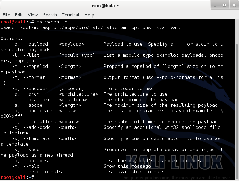 Part of the Metasploit Framework, msfvenom is a command-line tool that helps penetration testing to generate stand-alone payloads to run on compromised machines to get remote access to the system. Msfvenom is a combination of two other Metasploit Framework tools: Msfpayload and Msfencode, which generate and encode payloads respectively.