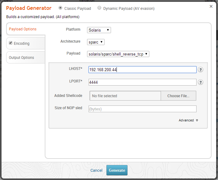 Even if you have used Msfvenom before, chances are that you need to look up the tool's documentation every time you want to generate a payload. Msfvenom is a great tool, but getting all of the command line options right can be a challenge. With the new Payload generator, you can generate new payloads for any platform much more quickly: