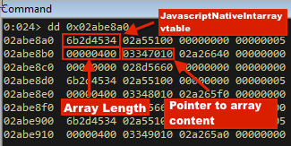 As an example, our JavascriptNativeIntArray has the following layout in memory: