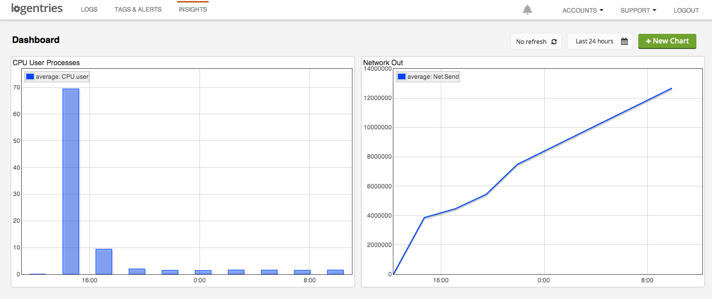 • All your logs and server metrics in one place: I’ve had many of our users ask me something along the lines of: ‘hey why don’t you grab my server metrics and feed these into my logentries account – I’m sick of having to log into multiple dashboards to get an understanding for what’s going on in my system’. Having your application and system logs in one place alongside your server metrics means you have one less tool to log into and pay for!