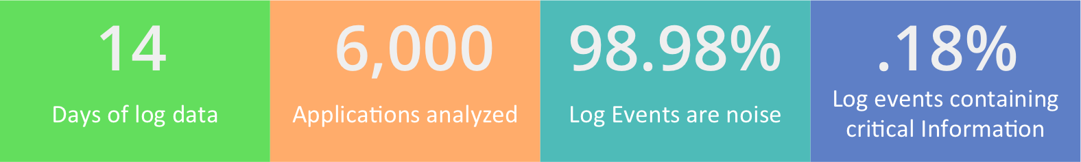 Logentries conducted our own research on how data is being collected and analyzed across our user base, and found that of the data processed, 99.82% of log events are noise. We found that only about .18% of log events contain critical information for performance and reliability (like fatal events, critical events, warnings, and exceptions).