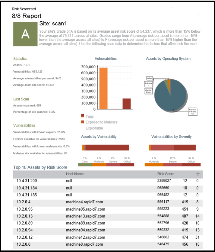 One of the most strenuous aspects of managing your security program is understanding where to focus your time and effort. It can be a challenge to balance providing consistent progress updates to your stakeholders and working with your IT teams to prioritize and remediate issues based on the most accurate data available at that time. Communication is critical, yet how do you know what to target and how do you share this information with your organization? Nexpose has the perfect tool to help you achieve your security goals and communicate your status to your team. With the introduction of the Risk Scorecard report you can see where you are doing well, what areas need work, and where to invest more time and resources. Based on the popular Community report, Site Report Card, the Risk Scorecard report includes all of your favorite features plus some awesome new ones and a slick interface that will enhance the visual communication of your data.