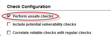 5. In the Vulnerability Checks page, select Perform unsafe checks.