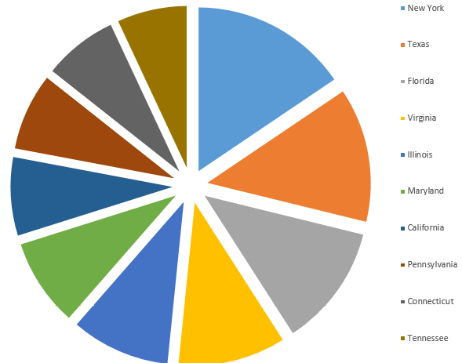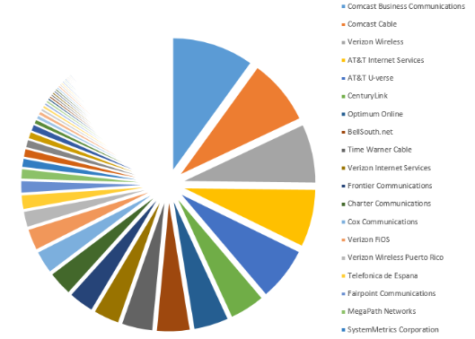 An Internet-wide scan on January 10th, 2015 [3] identified approximately 5,800 ATGs with TCP port 10001 exposed to the internet and no password set. The majority of these systems belong to retail gas stations, truck stops, and convenience stores. A number of major brands and franchises were represented in the dataset. An unknown number of ATGs are exposed through modem access. The majority of the ATGs appear to be manufactured by Vedeer-Root, one of the largest vendors in this space, and were identified on IP ranges associated with consumer broadband services. The graphs below indicate the top 10 states with exposed ATGs followed by a breakdown of ATGs by ISP.