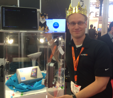 I recently spent a wonderful week in London to participate in Infosecurity Europe as part of a larger group of internationally-based Rapid7 employees. If you've been to many events, you know that vendors quite often come up with clever ways to attract people to their booth through giveaways, technical presentations, and product demonstrations. Lucky for me, our booth happened to be right next to a vendor who had a rather neat contest involving a keypad lock on a plexiglass case holding a tablet computer. While I didn't want the tablet computer (nor do I think I was eligible to win it), the allure of trying to break into the case seemed worth a little bit of effort.