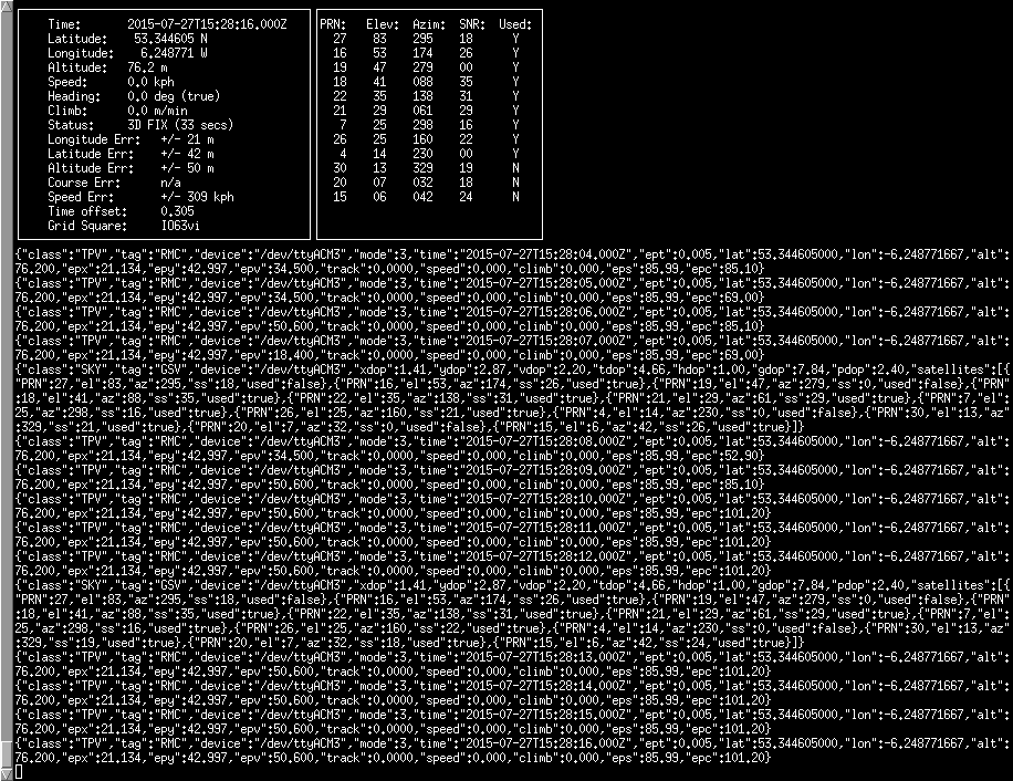 The above change will make the GPS look for satellites as soon as it starts up. Gpsd presents data to the user in a number of ways; in this case gpsd is already writing information out to a shared memory segment that ntpd understands as it usually follows the NMEA standard – some more information can be found here http://www.catb.org/gpsd/NMEA.html.