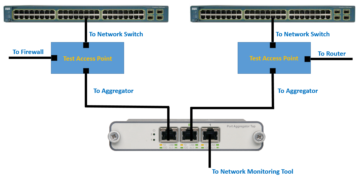 They are a low-cost option if you want to monitor single ports, but more advanced versions are available that allow for many-to-one port mirroring. The following diagram shows a typical use case. A TAP is used to take a copy of traffic going to/from a firewall and sends a copy to a network monitoring tool.
