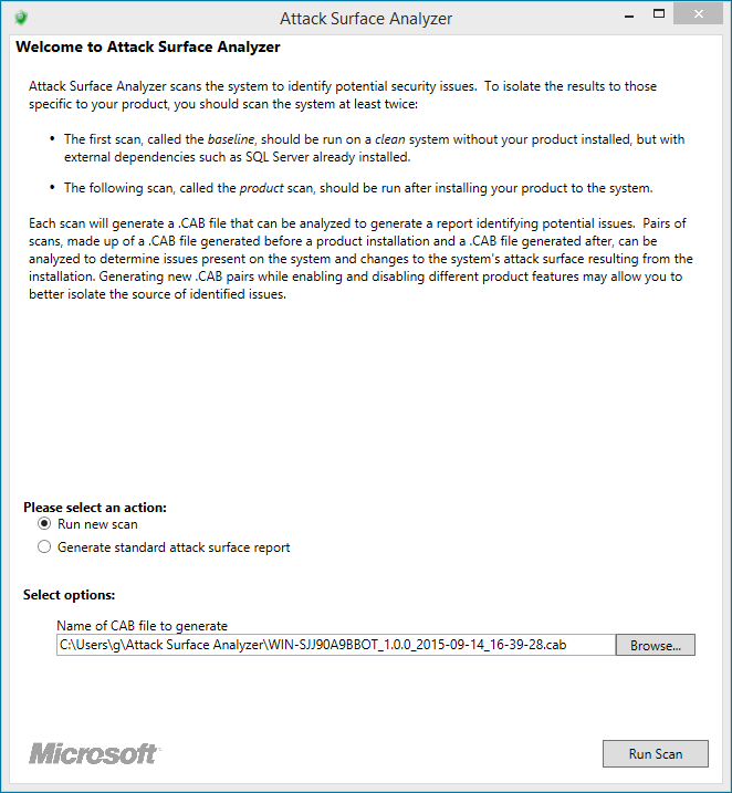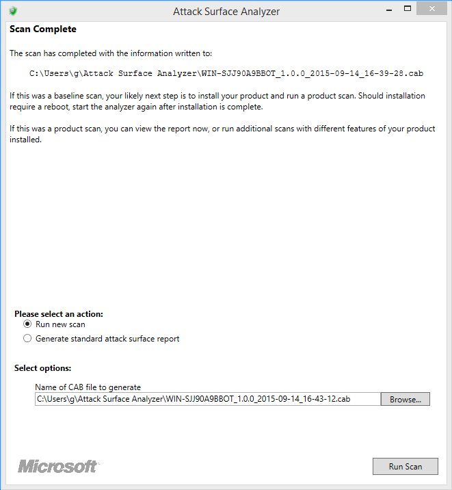 Note: reports can be generated from any computer with the Attack Surface Analyzer installed, provided the scan files are available to it.