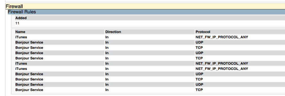 Firewall rules were added. A potential mitigation for this would be to control Windows Firewall rules centrally using GPOs, ensuring that these rules do not persist on systems where iTunes is deployed.