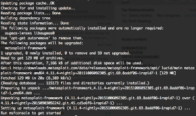 To address the needs of open source enthusiasts, those needing more frequent updates, or those simply looking for an easy way to setup a database for Metasploit Framework development use, we have created Open Source installers for Metasploit Framework for Windows, OS X and Linux x86 and x86-64 platforms. These installers utilize the Omnibus tool from chef in order to package everything needed to run Metasploit Framework, from dependent libraries, specific Ruby versions up to a built-in PostgreSQL database. The installers are easy to install and get up and running in seconds. They are also built and tested automatically each night, so you can always run 'msfupdate' and get the latest exploits and payloads without having to setup a development environment. The installers also integrate with your OSes native package manager, be it Linux RPM or DEB-based, MSI for Windows or PKG for OS X. That makes them easy to uninstall as well.