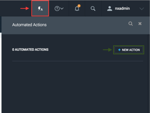 In order to configure the Automated Action, we will use Automated Actions widget. The widget is located on the top right hand corner of Nexpose user interface marked with red square, shown on the screenshot 1: