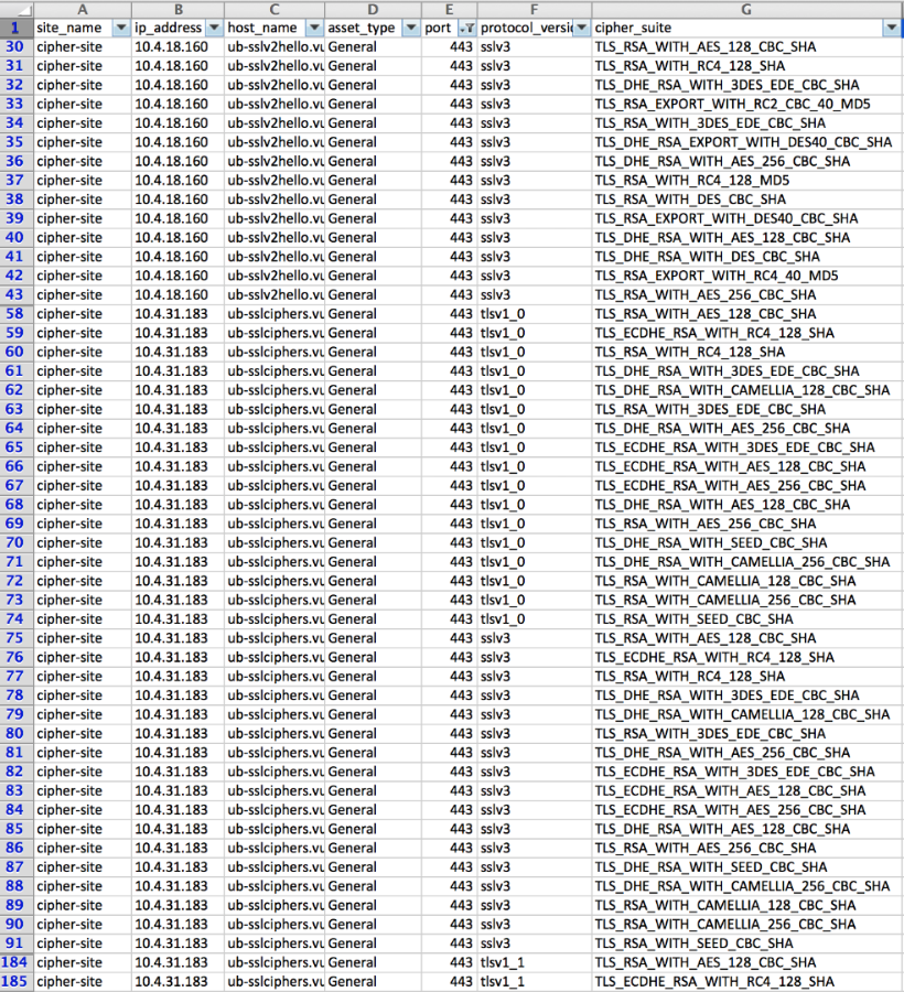 From Heartbleed to POODLE, FREAK to Logjam, system administrators dread the next vulnerability announcement with a catchy name or custom designed logo that will require patching and/or reconfiguring any services using TLS. The October 14th release of Nexpose (6.0.2) contains a number of improvements related to TLS that will make it easier for administrators to track which versions of the protocols are supported by assets, along with which cipher suites are enabled. We've also broken up our weak cipher vulnerability into multiple vulnerabilities to make it clearer why particular cipher suites are flagged as insecure. (Note that we will continue to ship the old ssl-weak-ciphers vulnerability alongside the new ones for a period of time to give customers who typically do content-only updates a chance to get the required product changes without losing coverage.)
