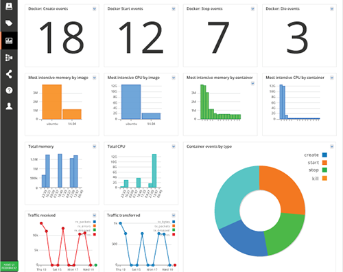 The second step to developing a great Docker log monitoring tool was to build a powerful dashboard that visualizes your application logs, container metrics and Docker events. By delivering this data in one easy-to-use Docker Insights Dashboard, it becomes significantly easier to identify issues that may have previously gone unnoticed. To simplify setup, we decided to have the dashboard provision itself automatically when a Logentries user sends Docker logs within the first 30 days of starting their account. If an existing Logentries user wants to use the Docker Insights Dashboard in the future, it can be easily downloaded for free as a Logentries Community Pack.