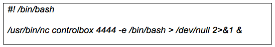 First we start a Netcat listener on a host we control on the Internet. For this discussion I will refer to that host as “Controlbox” this is done using the following command: