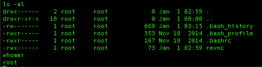 First create a script file with the following content (Figure 5) in the root users home folder /root/. In this case I named the file “revnc”. This simple script has very little complexity, so when executed, if the Netcat listener on the Controlbox is not running or the connection to that listener port is already established this script will just exit with the error message “cannot connect to remote host (controlbox): Connection refused”. To silence this error message I redirected it to dev/null.